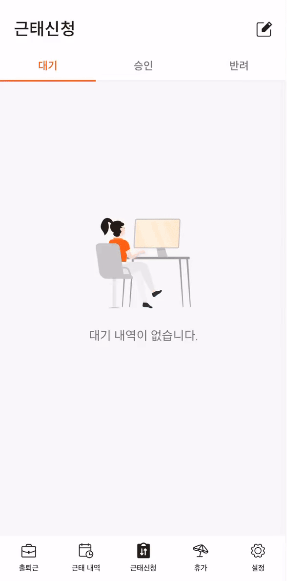 앱에 접속한 뒤 하단에 신청 아이콘을 누르면 대기 중인 결재 요청 건이 보이는데요.