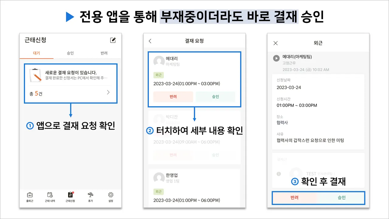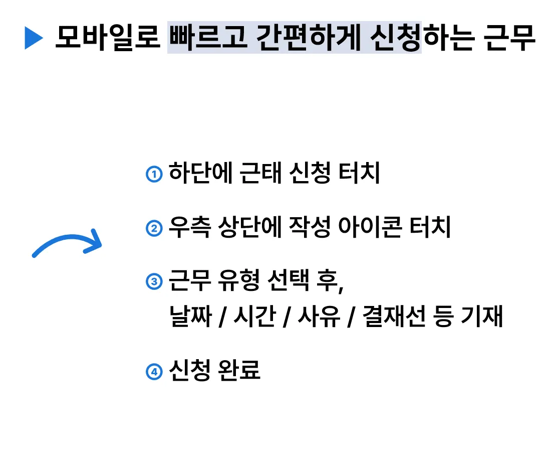 근무 신청부터 승인까지 빠르게 진행할 수 있죠.