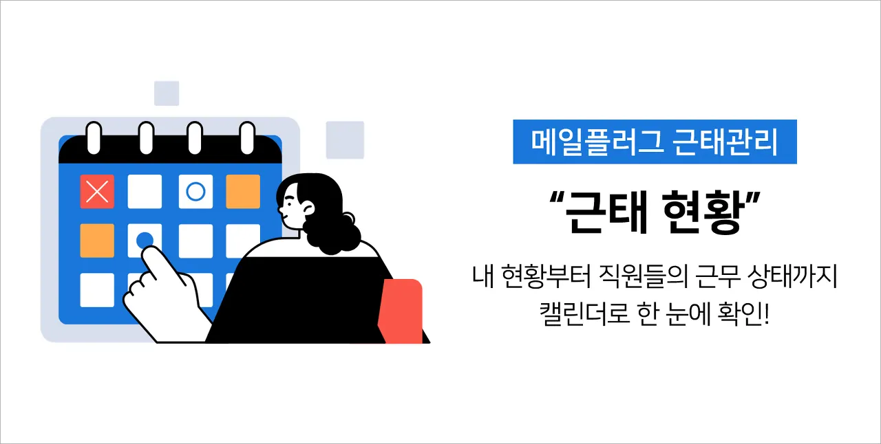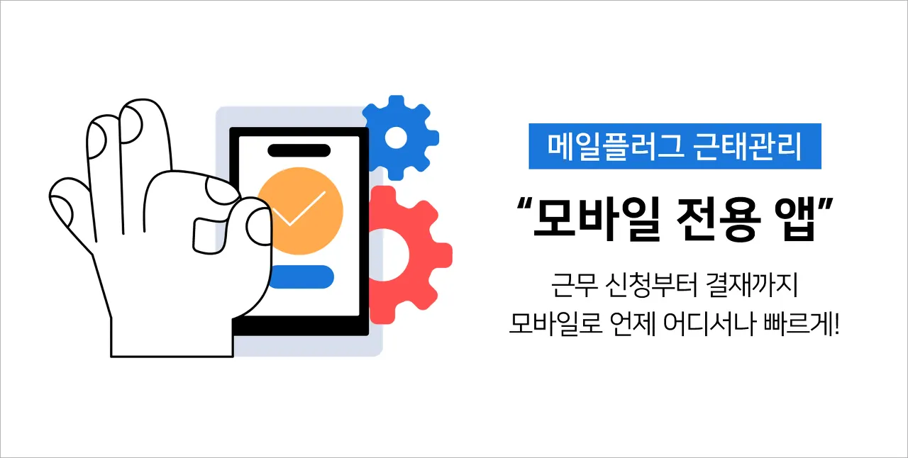 좌측 상단의 이미지는 메일플러그의 전용 근태 앱으로