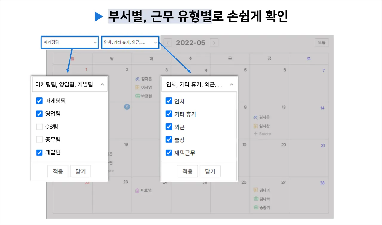 하지만 모든 직원의 근무 유형이 전부 캘린더에 표시된다면,