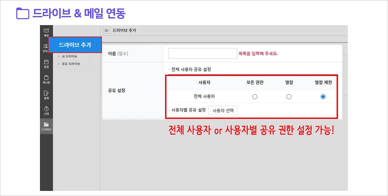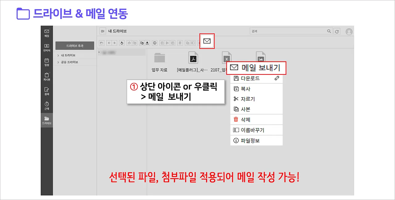 저희 메일플러그에서도 드라이브 기능을 제공하고 있는데요.