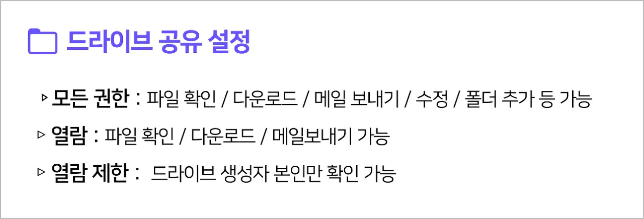 원하는 사용자끼리, 다양한 조건으로 드라이브를 생성할 수 있으니