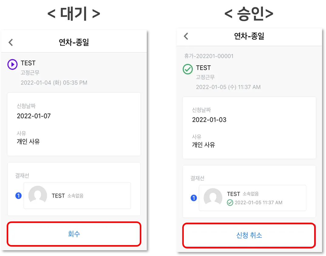 휴가를 잘못 요청한 경우엔 문서 회수를,