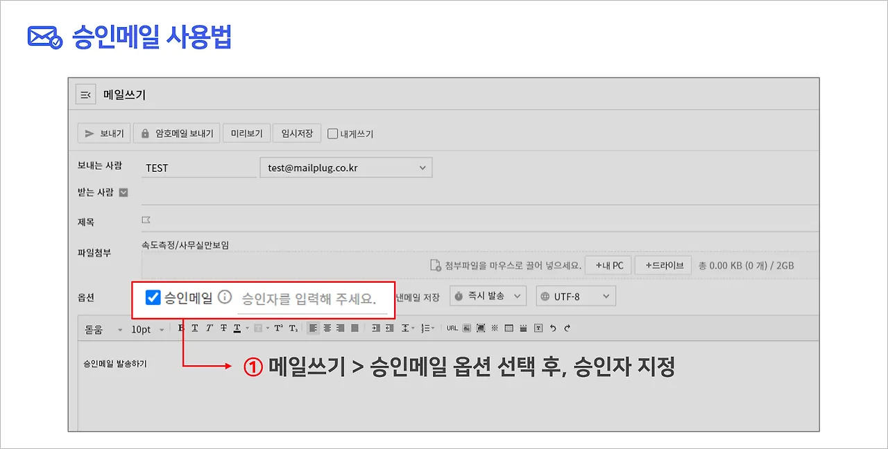 사용법은 작성 화면에서 승인메일 옵션을 선택해주시면 되는데요.