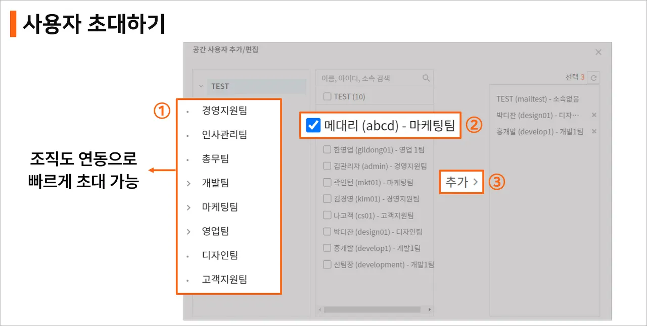 그다음에는 함께 할 사용자들을 초대하면 되는데요.