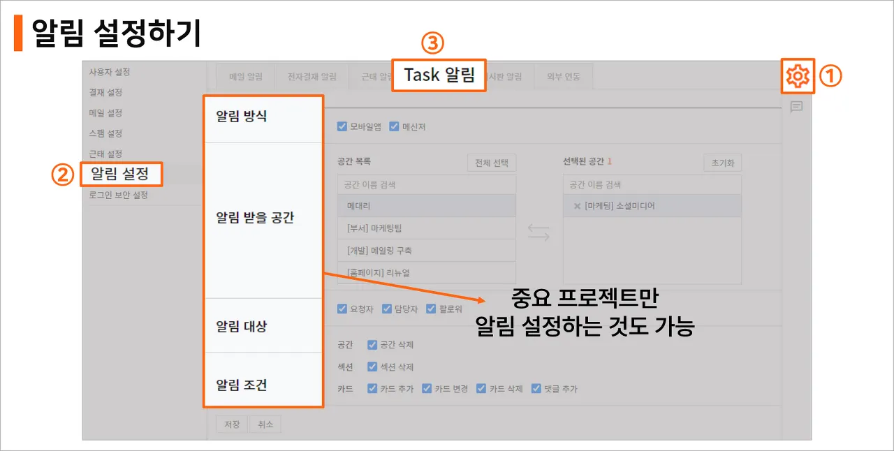 알림 설정 > TASK 알림으로 들어가 설정하면 되죠.