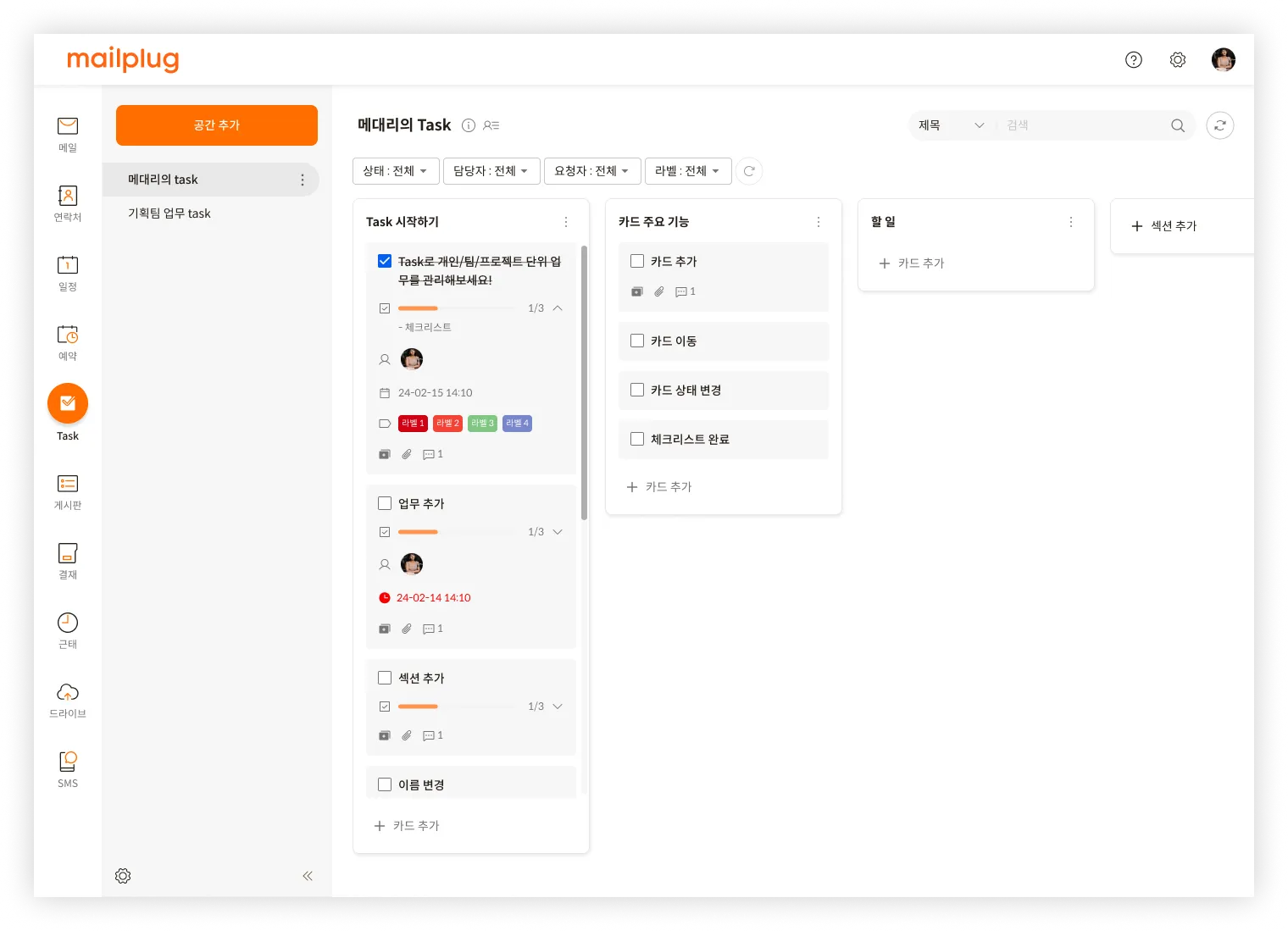 칸반 보드 형태의 할일 관리