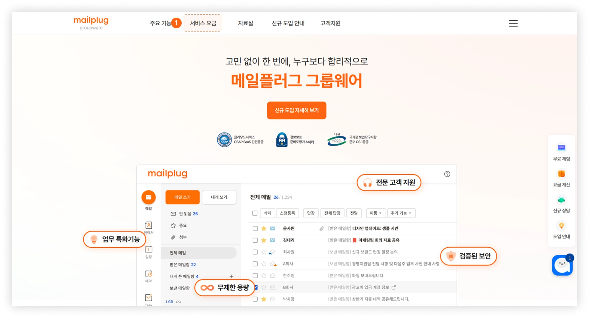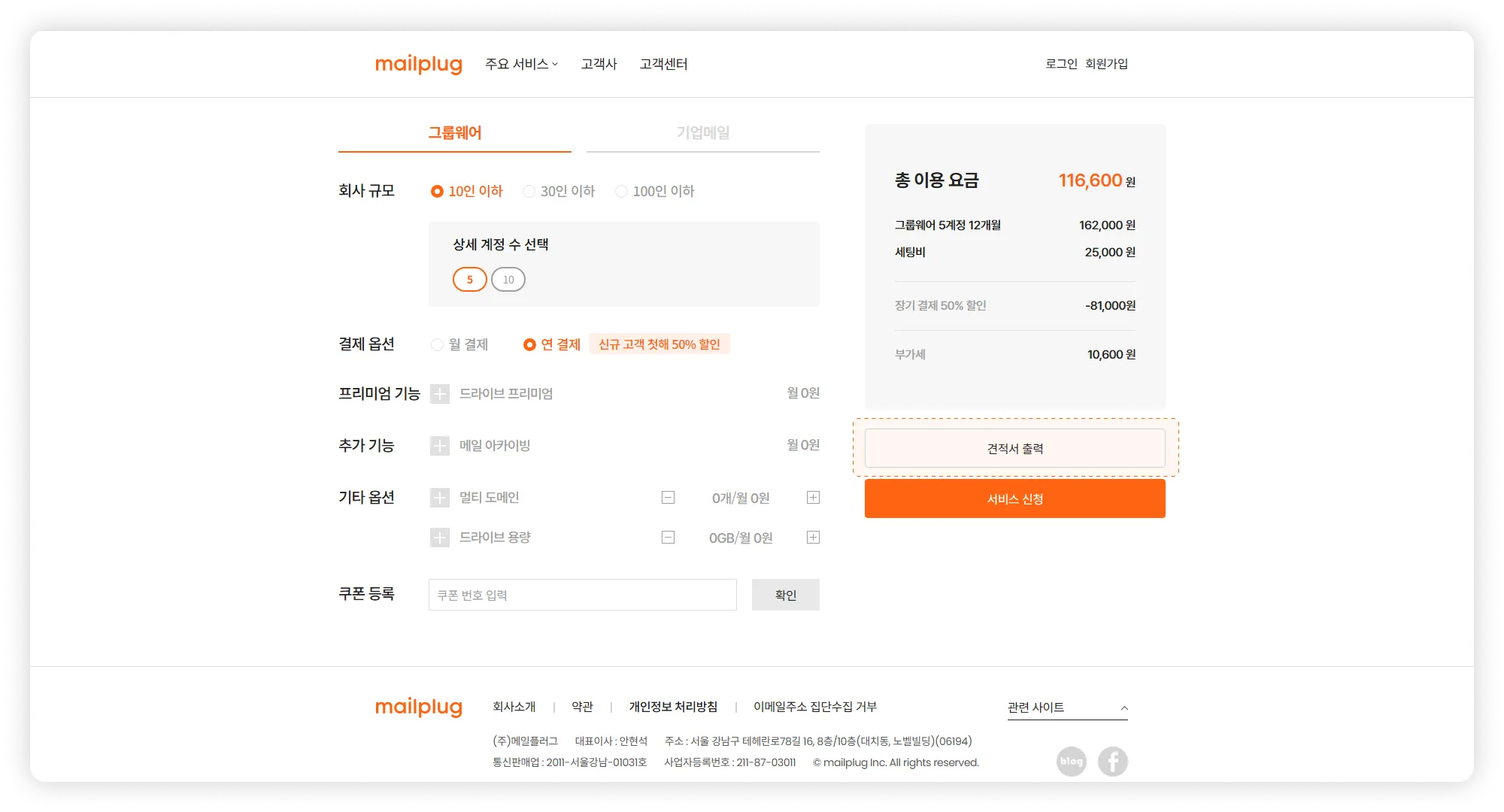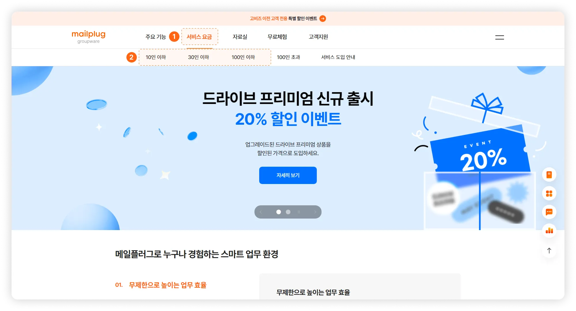 메일플러그 그룹웨어/기업메일 홈페이지에 접속해 주세요.