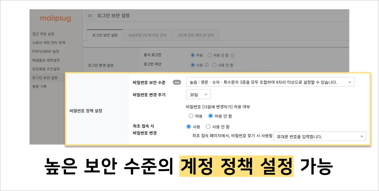 또한, 메일 시스템의 비밀번호 정책을
