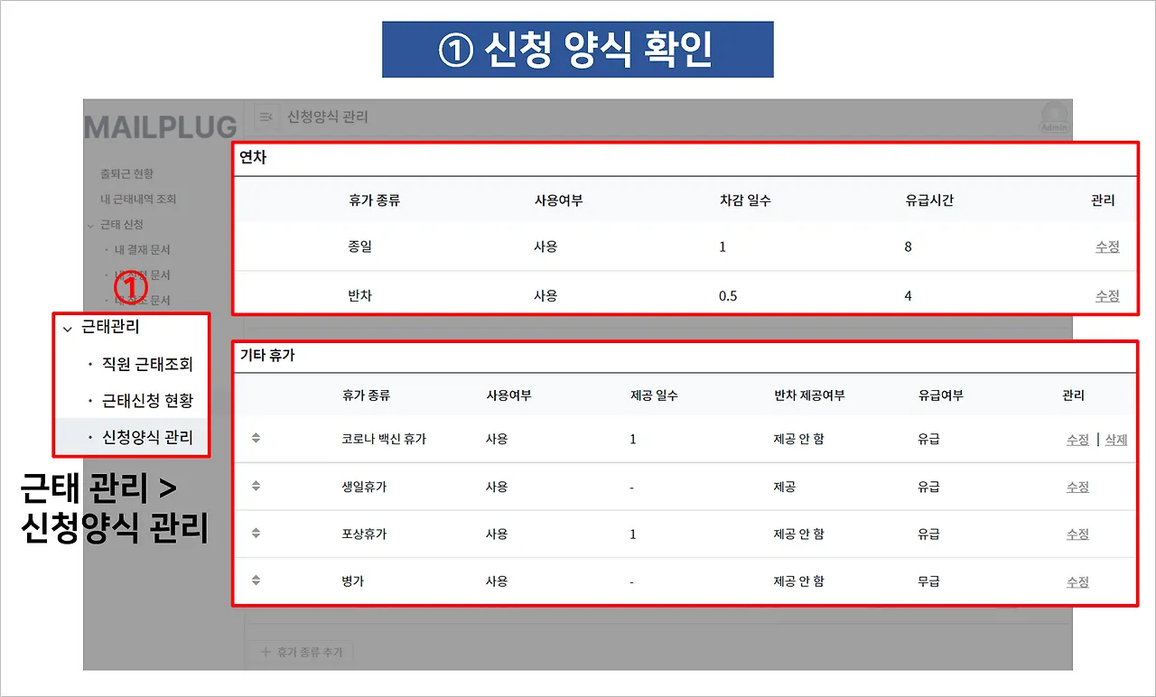 메일플러그의 근태관리 시스템은 인사 관리자 기능을 통해