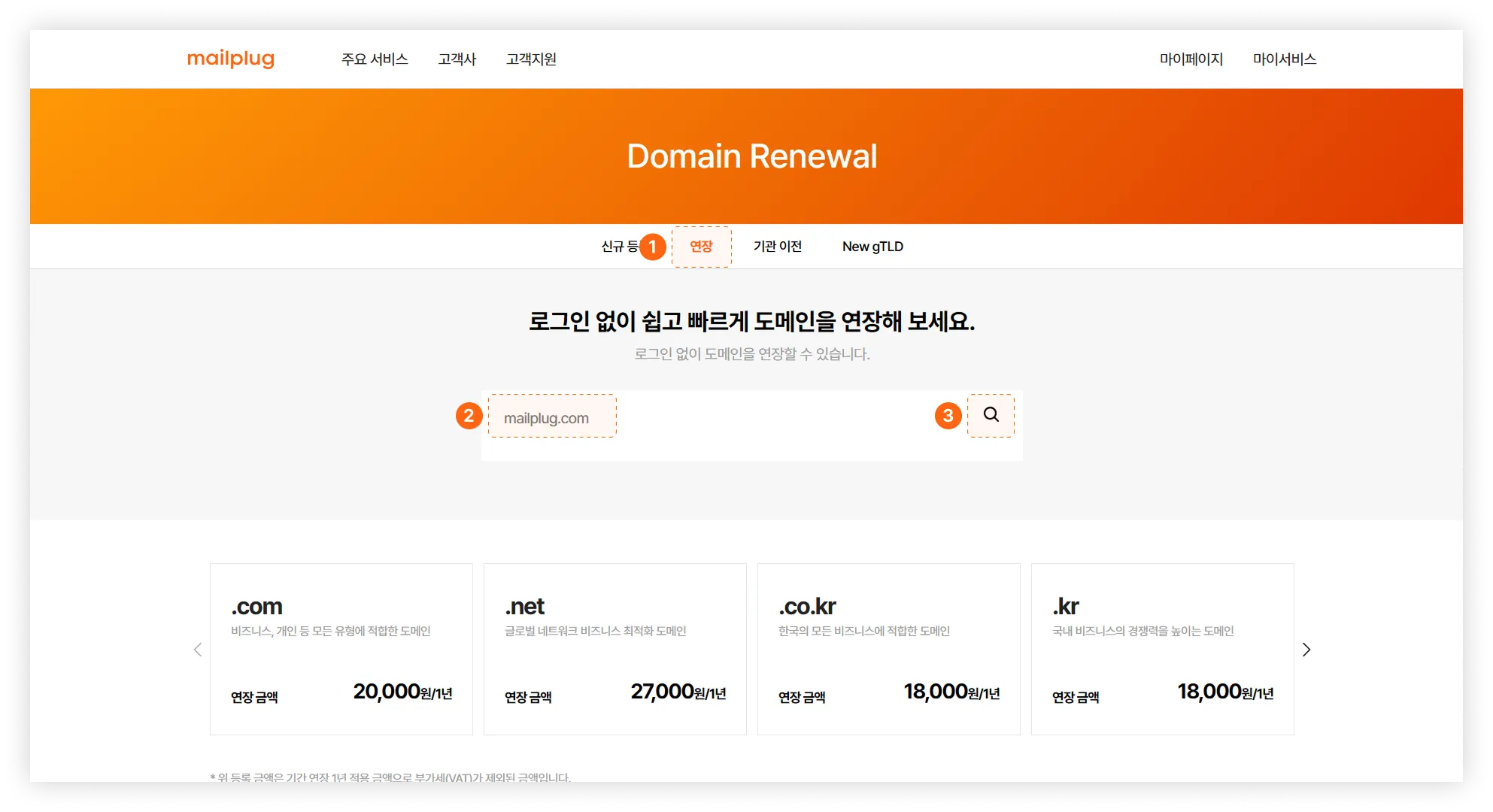 국제 도메인 : 결제와 동시에 연장이 처리되므로 연장 이후 취소가 불가합니다.