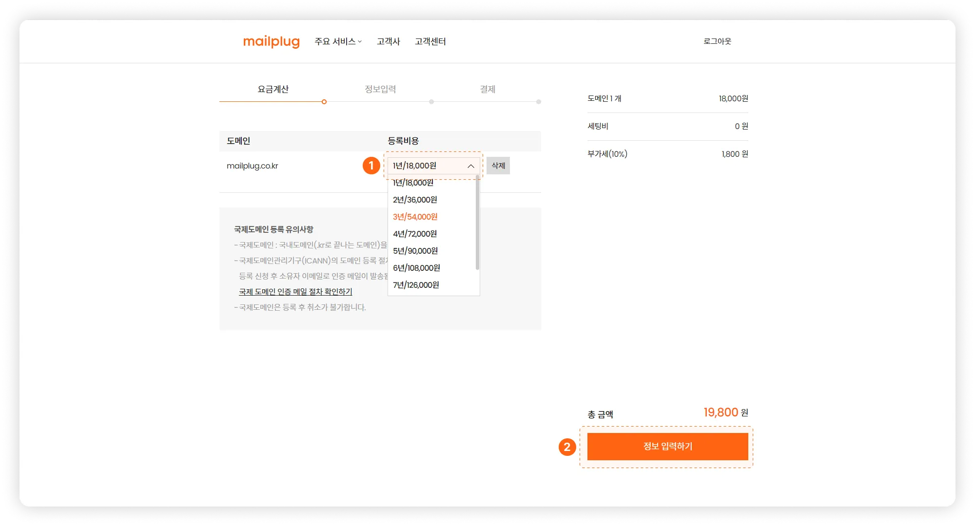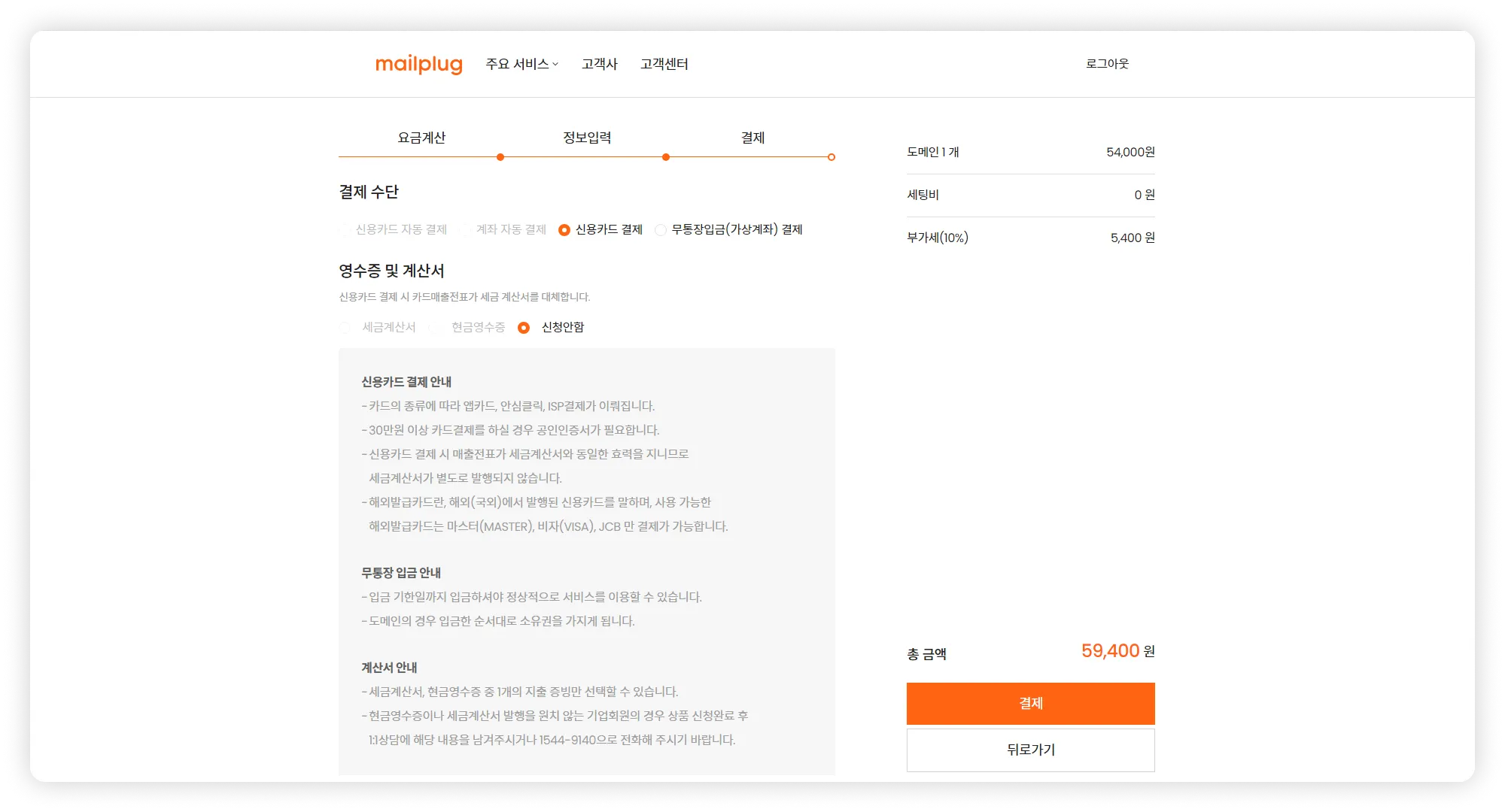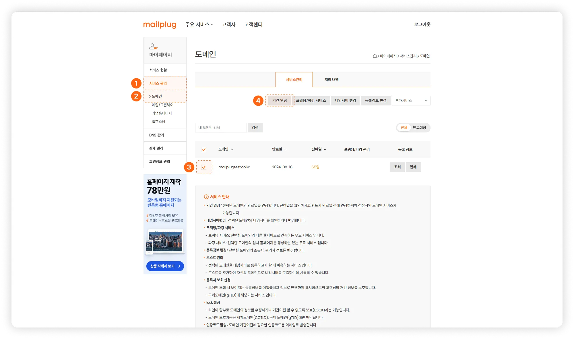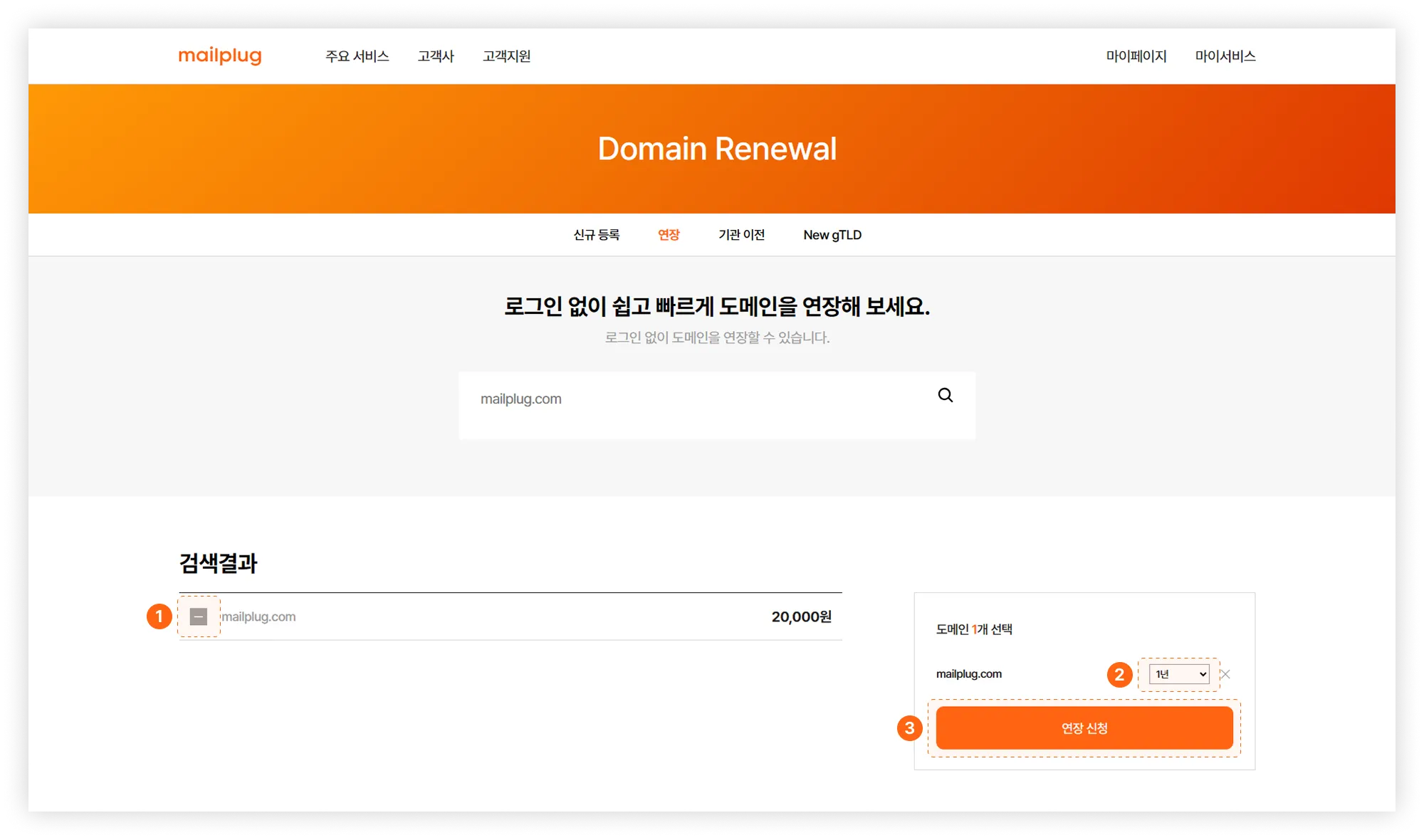 결제 완료 시 도메인 기간 연장이 완료됩니다.