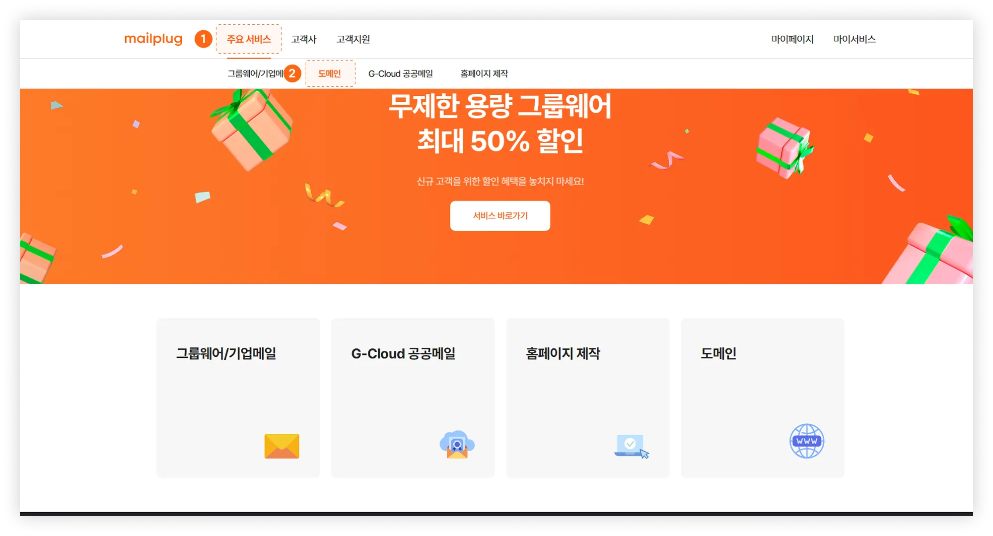 서비스 관리 아래 도메인을 클릭해 주세요.