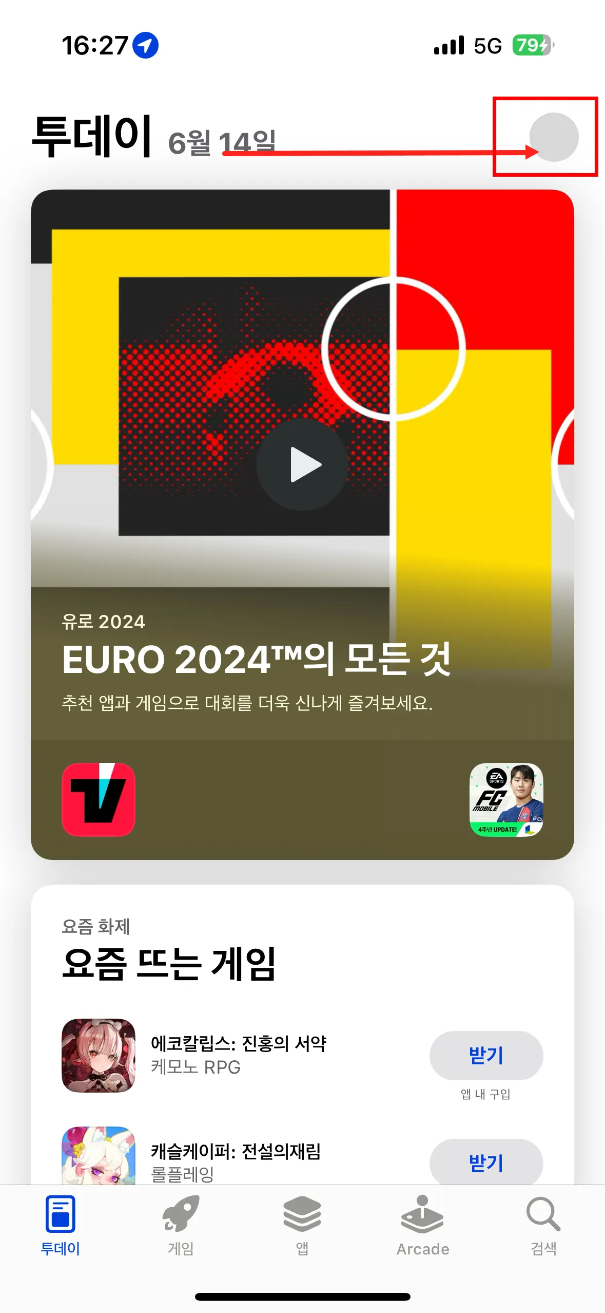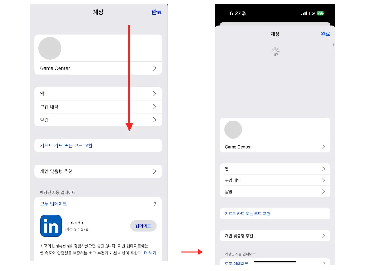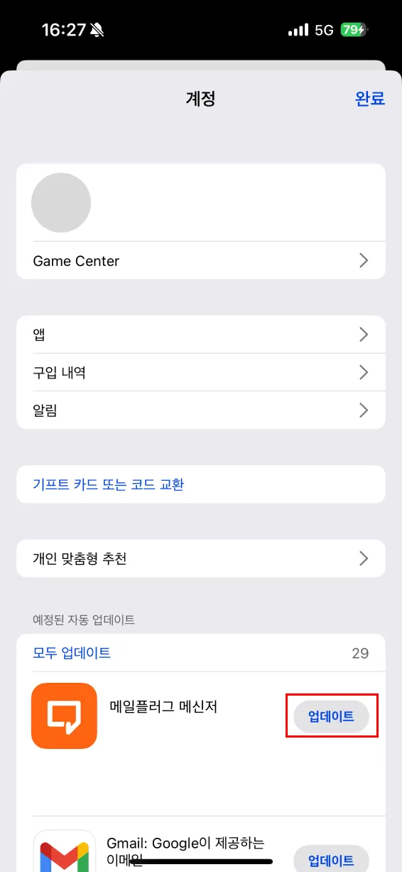 App Store 접속 → 우측 상단 프로필 클릭