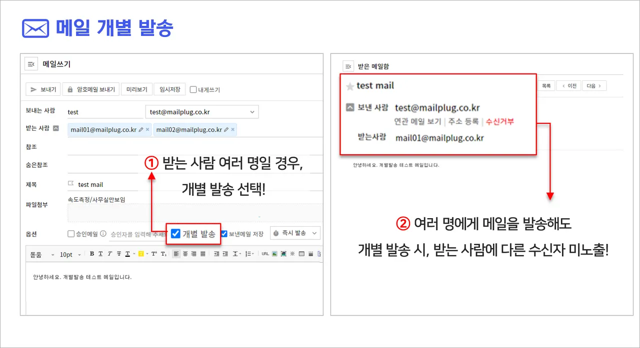 이때 개별발송 기능을 활용한다면, 문제를 해결할 수 있습니다.