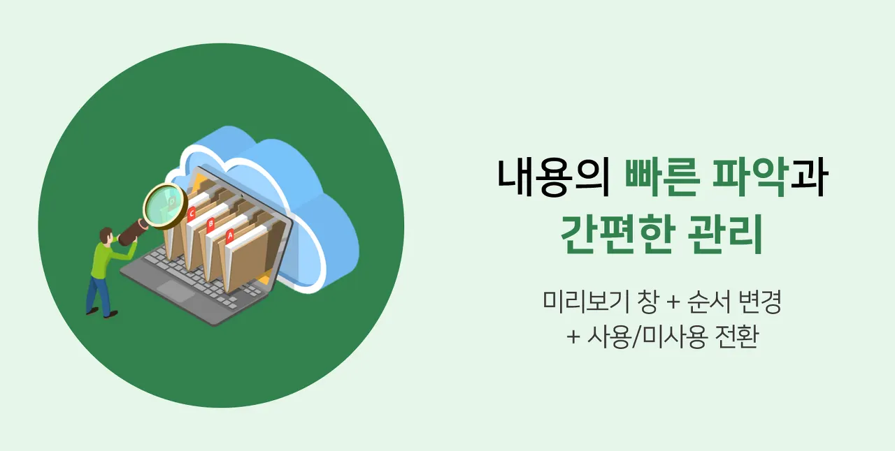 관리자는 파악한 내용을 바탕으로 사용 여부와 순서를 관리할 수 있습니다.