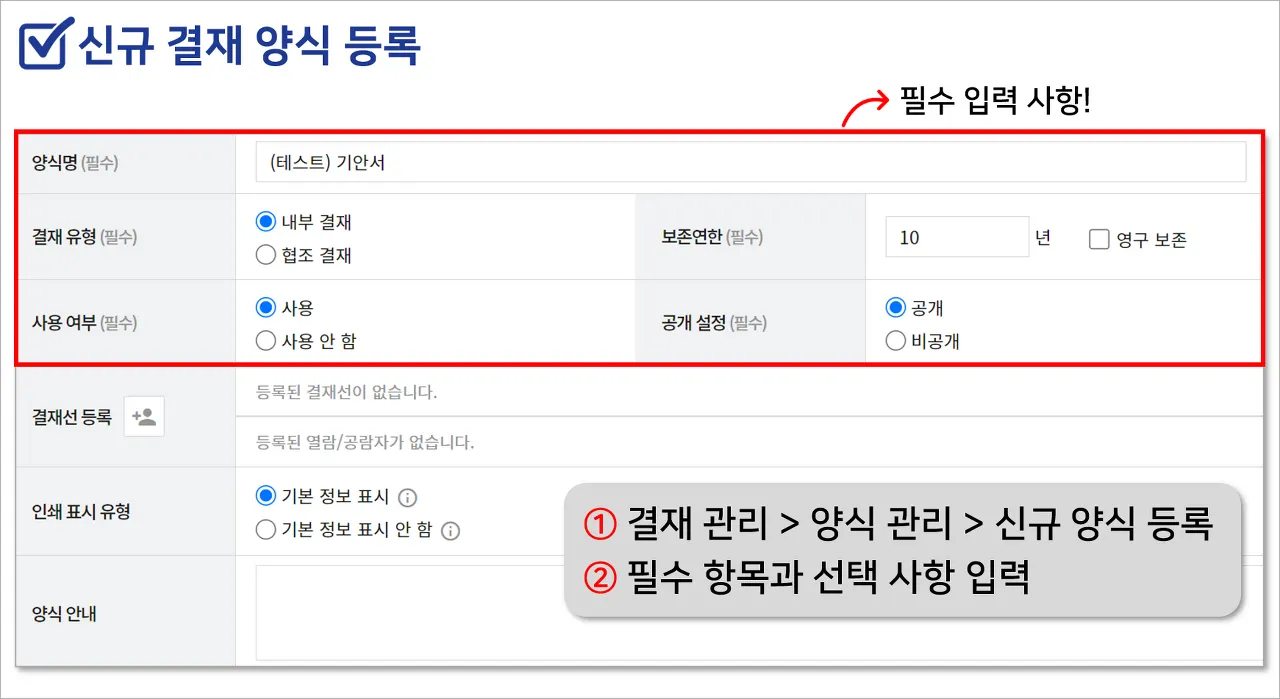 결재 관리 > 양식 관리에 들어가면 신규 등록이 가능한데요.
