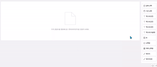 기본 설정 완료 시, 하단 폼빌더를 통해 세부적인 양식을 작성하실 수 있는데요.