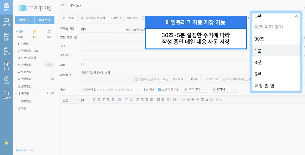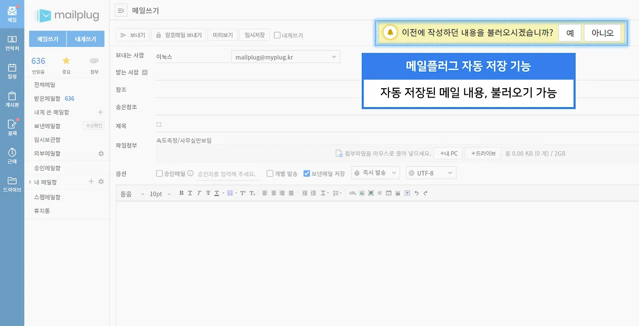 자동 저장된 웹메일을 다시 불러올 수 있습니다.