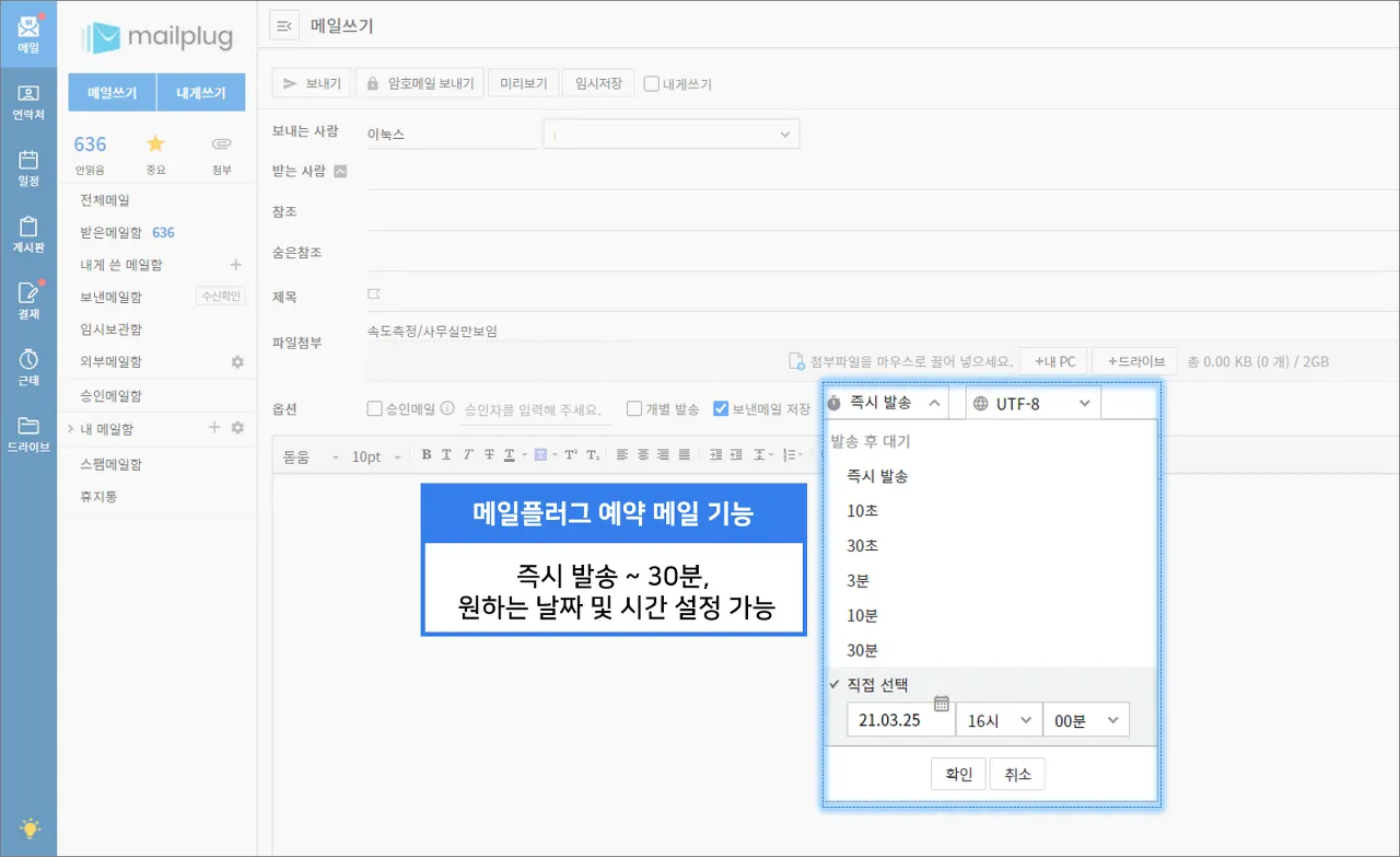 중요한 내용이 담긴 웹메일을 예약 발송해두면,