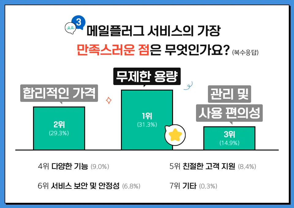 무려 621명의 고객분께서 메일플러그 기업메일 서비스를 이용하시면서 만족스러운 점, 아쉬운 점 등 다양한 의견을 전달해주셨습니다.