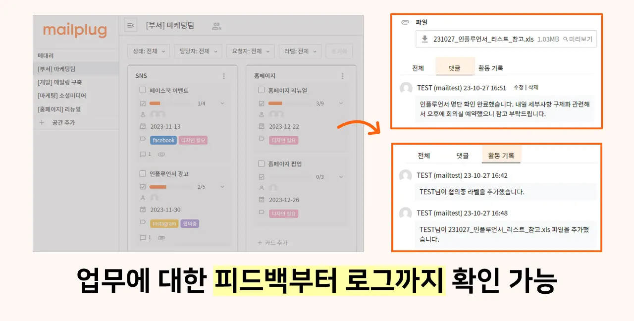 오늘은 이런 인수인계를 메일플러그의 업무협업툴로