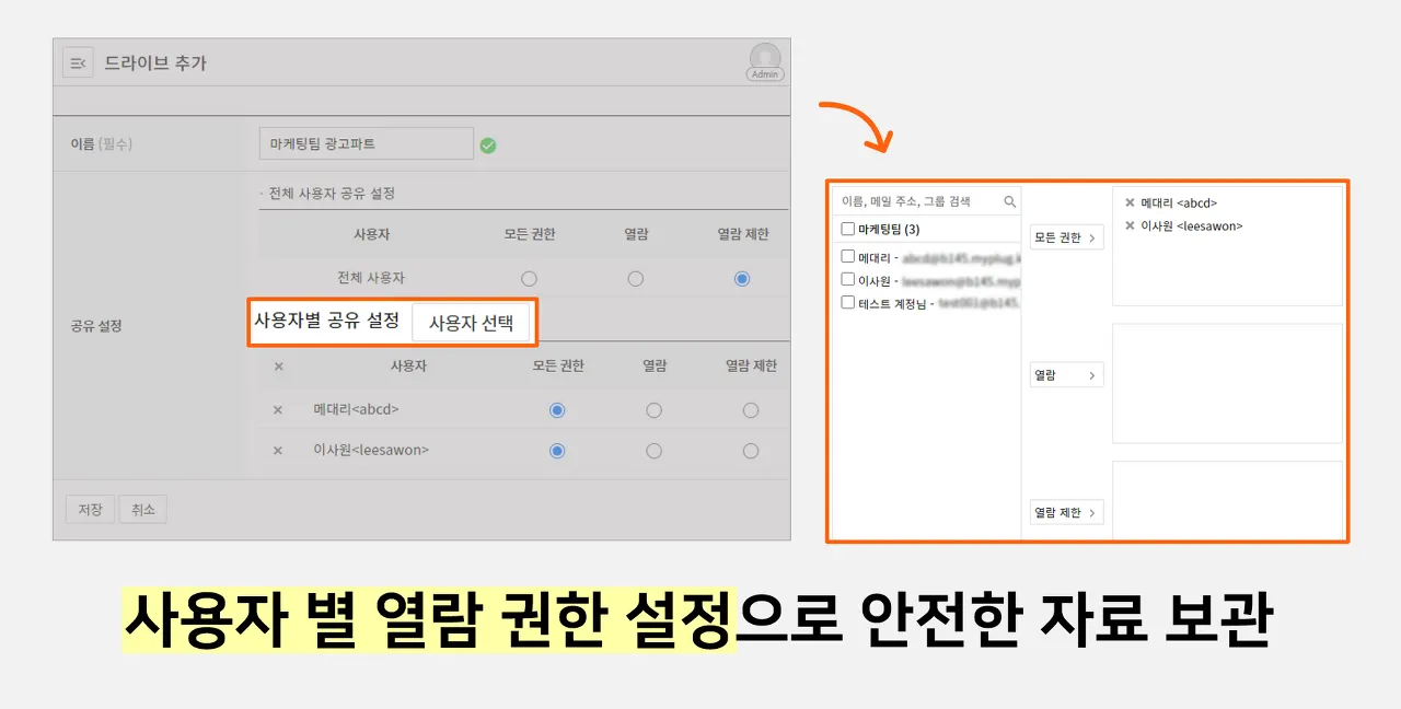 특별히 드라이브 생성 시 열람 권한 설정이 가능해,